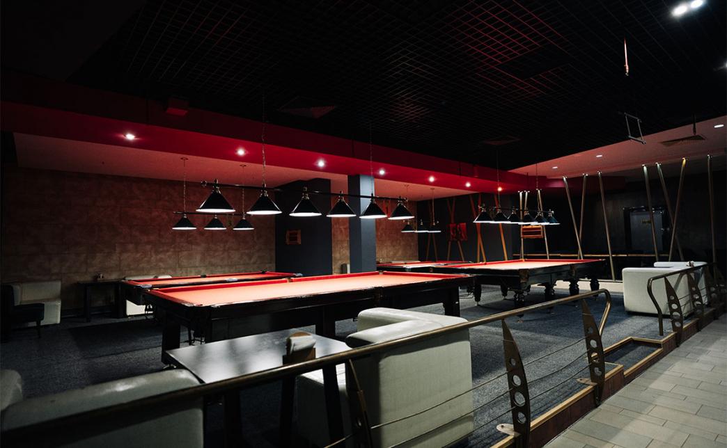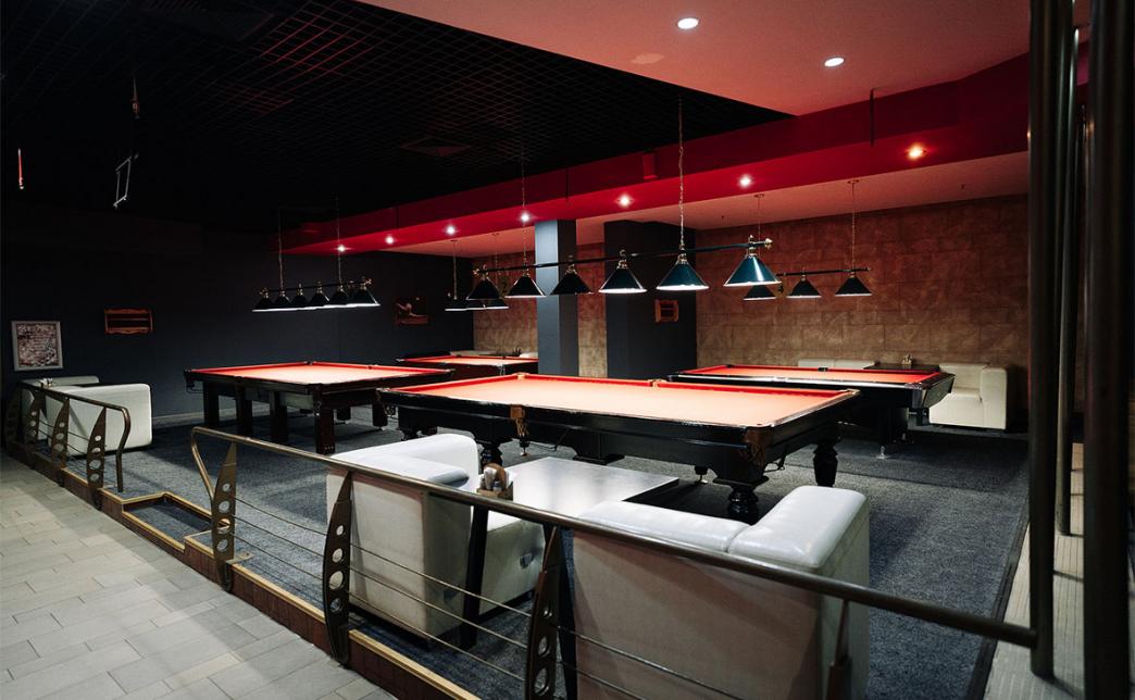 Наша бильярдная релакс-зона оснащена столиками, где Вы можете перекусить, заказав блюда и напитки из нашего меню, и телевизором с трансляцией спортивных программ.