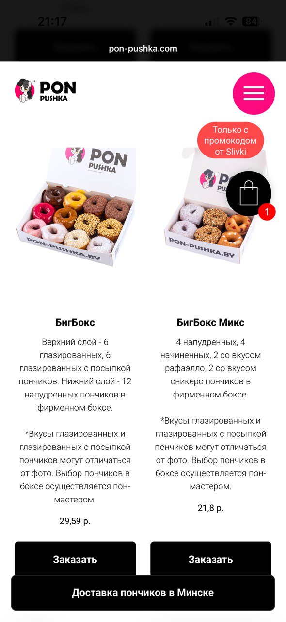 Заказ забирали по адресу Белинского 28 (ТЦ "Гринвич"). Пончики конечно вкусные, но зачем вводить людей в заблуждение такими акциями? Воспользовались акцией исключительно из-за "начиненных пончиков", а по факту так ни одного и не попробовали.