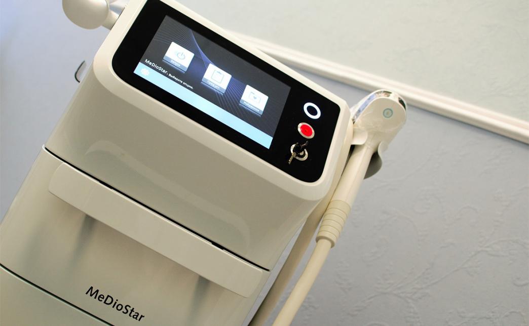 "MeDioStar Monolith" - это диодный лазер не имеющий аналогов длины волны 810-940 нМ, оснащен 360 градусным контактным охлаждением, который работает ультракороткими импульсами непосредственно на саму проблему, устраняя ее
