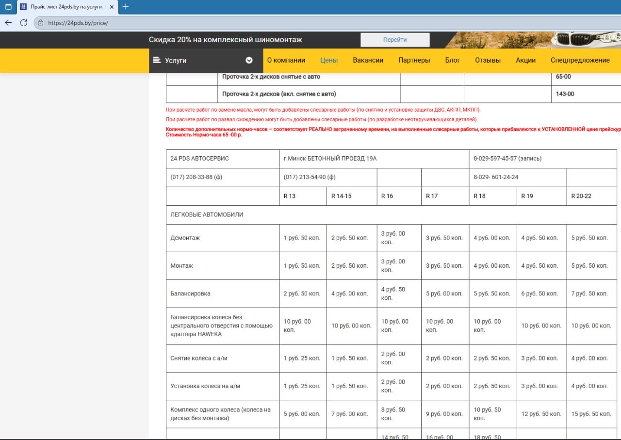 Снятие/установка колесаR15- это работа! Согласно цен у Вас на сайте эта работа стоит 3 рубля за колесо. Итого 12 за комплект снять поставить, без грузов и расходников. Комплекс колес на дисках стоит 7 рублей за колесо. Это тоже только работа без расходников? При этом по телефону вы цены не подтверждаете и не называете. На месте цена комплекса оказывается уже 10 рублей за колесо, но это всё равно не 44 за комплект, как Вы указали в условиях на сливках. И пакеты (которые тоже указаны в условиях акции) у Вас не выдают. Продолжать?