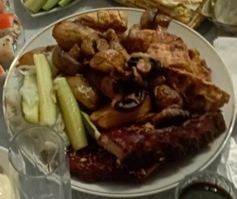 Благодарю за доставку! И за шашлык! Заказывали онлайн 5 октября, накануне при заказе по телефону мне даже помогли решить вопрос с промокодом, когда я заказала дважды. Понравилось изначально само общение. В день заказа все привезли вовремя. На 6 человек (из низ 1 ребенок) мы остались довольны все. Заказ приехал теплый, не грели, подали сразу на стол. Заказывали 1 соус чесночный - привезли 3) за это отдельная благодарность! Соус чесночный очень вкусный. Огурчики промаринованные, всем понравились, прикольный кисловатый вкус. Лук понравился не очень, но это картину не испортило. Шампиньоны большие, вкус ненавязчивый. Ребра свиные сладко-острые, тоже зашли ). Картошечка тоже что надо. Крупные дольки. Поскольку это был праздник, была и другая еда, но мясом мы все наелись и еще много осталось.