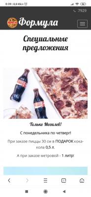 - Промокод дает право на скидку 50% на пиццу с понедельника по четверг от пиццерии "Формула"